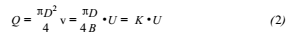 式(1)說明,導體在磁場內作切割磁力線運動,導體兩端產生的感應電動勢的大小與磁感應強度B成正比,與導體的長度D成正比,與導體運動的速度v成正比。由式(2)可知液體的體積流量與感應電動勢成正比,這就是酒精流量計的設計原理。