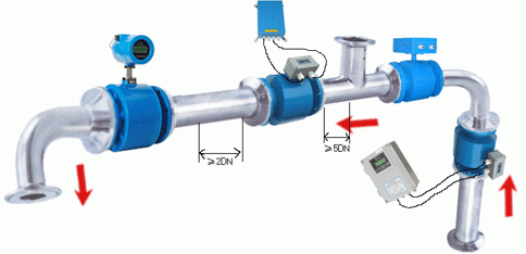 3、由于感應電壓信號是在整個充滿磁場的空間中形成的,是管道載面上的平均值,因此傳感器所需的直管段較短,長度為5倍的管道直徑。