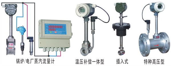 2、溫度補償一體型渦街流量計還帶有溫度傳感器,可以直接測量出飽和蒸汽的溫度并計算出壓力,從而顯示飽和蒸汽的質量流量。