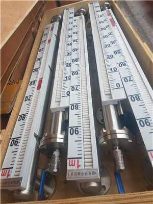 2、磁翻板液位計與容器之間應安裝截止閥,以便檢修清洗時關閉液料,液位計周圍不允許有強磁場,以免影響正常 工作。