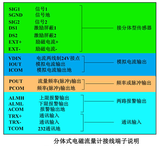 四、一體型鹽酸流量計轉(zhuǎn)換器接線端子接線圖說明