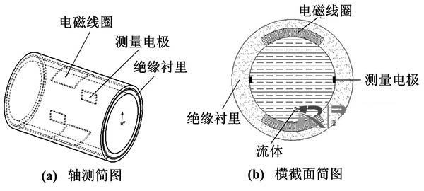 電容式工業污水流量計從根本上解決了電極表面附著、腐蝕、摩擦等問題,其電極與被測流體間有絕緣襯里隔離,或者直接采用絕緣測量管。電極置于測量管外面或鑲嵌于測量管內部。嵌人式工業污水流量計和外貼式工業污水流量計的結構如圖2所示。