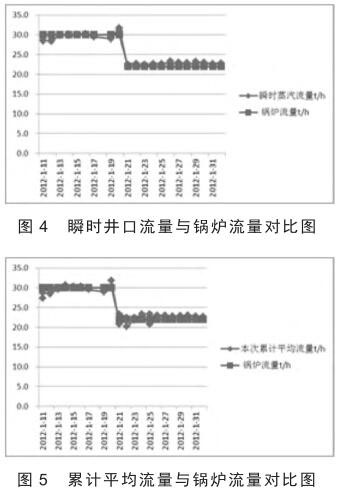 從繪制的散點曲線圖中可以看出,流量計的瞬時流量、瞬時干度基本能夠代表累計流量和累計干度,二者之間誤差較小 ;瞬時流量與累計流量曲線均與鍋爐流量曲線一致 ;瞬時干度與累計平均干度曲線稍低于鍋爐干度,瞬時流量對比誤差與本次累計流量對比誤差曲線趨勢一致,瞬時干度對比誤差與本次累計平均干度誤差圖曲線趨勢一致。將瞬時值對比能夠代表累計值對比,二者平均誤差在 0.3%,大部分誤差在 3% ;單井累加流量值與鍋爐流量累加值平均誤差在 2% 以內,且分布較穩定,沒有大的波動 ;單井干度平均值與鍋爐干度平均值誤差在 8% 以內。說明現場安裝的氬氣流量計能夠準確的計量蒸汽流量和干度,能夠較好的適應 SAGD 高干度蒸汽計量的要求。