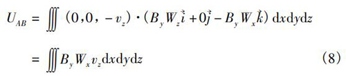 式中V為水泥漿流量計傳感器測量空間;W→為權函數。在直角坐標系(x,y,z)中,式(5)可以轉換為