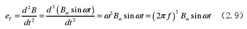 從上圖 2.5 中可以觀察到兩個電極、勵磁線圈、轉(zhuǎn)換器內(nèi)阻之間形成了一個閉合回路,將此回路稱之為初級繞組,從理論上進(jìn)行分析,磁力線 B 應(yīng)當(dāng)平行于勵磁線圈所產(chǎn)生的磁感應(yīng)線,但在實(shí)際的應(yīng)用過程中由于工藝差異,因此無法達(dá)到理想狀態(tài),會產(chǎn)生磁力線穿過勵磁線圈磁感應(yīng)線的情況,此時將會產(chǎn)生相應(yīng)的感應(yīng)電動勢,將此部分感應(yīng)電動勢稱為變壓器效應(yīng)。此效應(yīng)同樣滿足于楞次定律,利用楞次定律進(jìn)行計(jì)算可得如下電動勢: