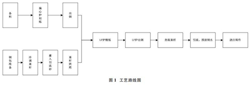 1.1 偏心爐+LF 爐雙聯(lián)冶煉工藝,鋼包冷調(diào)、熱裝燃?xì)饬髁坑?/strong>工藝路線圖簡介如圖 1。