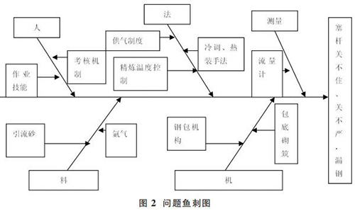 引言 我公司自 2009 年技改后,電爐采用偏心爐+LF 爐雙聯(lián)冶煉工藝,澆注采用冷調(diào)、燃?xì)饬髁坑?/strong>工藝,在生產(chǎn)過程中前期經(jīng)常發(fā)生燃?xì)饬髁坑?/strong>關(guān)不住---大漏鋼事故,關(guān)不嚴(yán)---喇叭口澆注情況,對鑄件澆注質(zhì)量以及成本構(gòu)成嚴(yán)重影響,由于我公司是鐵路內(nèi)*一家采用上述工藝,存在裝備、技術(shù)狀態(tài)不明確的情況,作業(yè)方式變化所導(dǎo)致技能暫時缺失的困境。通過全面調(diào)查影響因數(shù),找出問題點(diǎn),采取改進(jìn)措施,解決長期的技術(shù)難題。