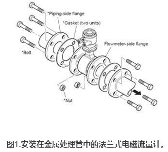 圖1.安裝在金屬處理管中的法蘭式稀硫酸流量計