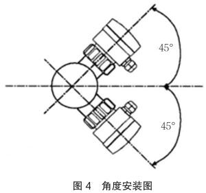 垂直安裝時(shí)確保流向由下而上,如圖 4 中箭頭所示,應(yīng)與管道水平中心線成 45 度角安裝航空煤油流量計(jì)。