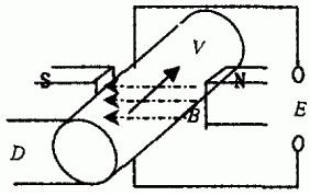 根據法拉*電磁感應定律,即導電液體在磁場中切割磁力線運動時,導體中產生感應電勢(見圖1),其感應電勢的大小與磁感應強度、流體做切割磁力線強度等因素成正比。