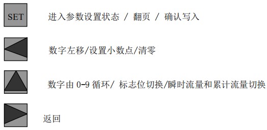 設(shè)置小數(shù)點:直接按 SET 鍵確認,進入默認流量參數(shù)設(shè)置菜單,顯示屏顯示 QP,按數(shù)字↑ 鍵設(shè)置標志位。按數(shù)字← 鍵設(shè)置小數(shù)點,按→鍵可以返回菜單選擇項。
