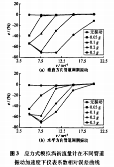 (1)管道振動加速度為0.05g、0.1g時,儀表系數相對誤差隨流速的升高而減小,*終減小至零;