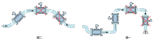 為了改善渦流與流場畸變的影響,流量計安裝的前、后直管段長度有一定要求,否則會影響測量精度(也可安裝整流器,盡量避免在靠近調節閥和半開閥門之后安裝)。